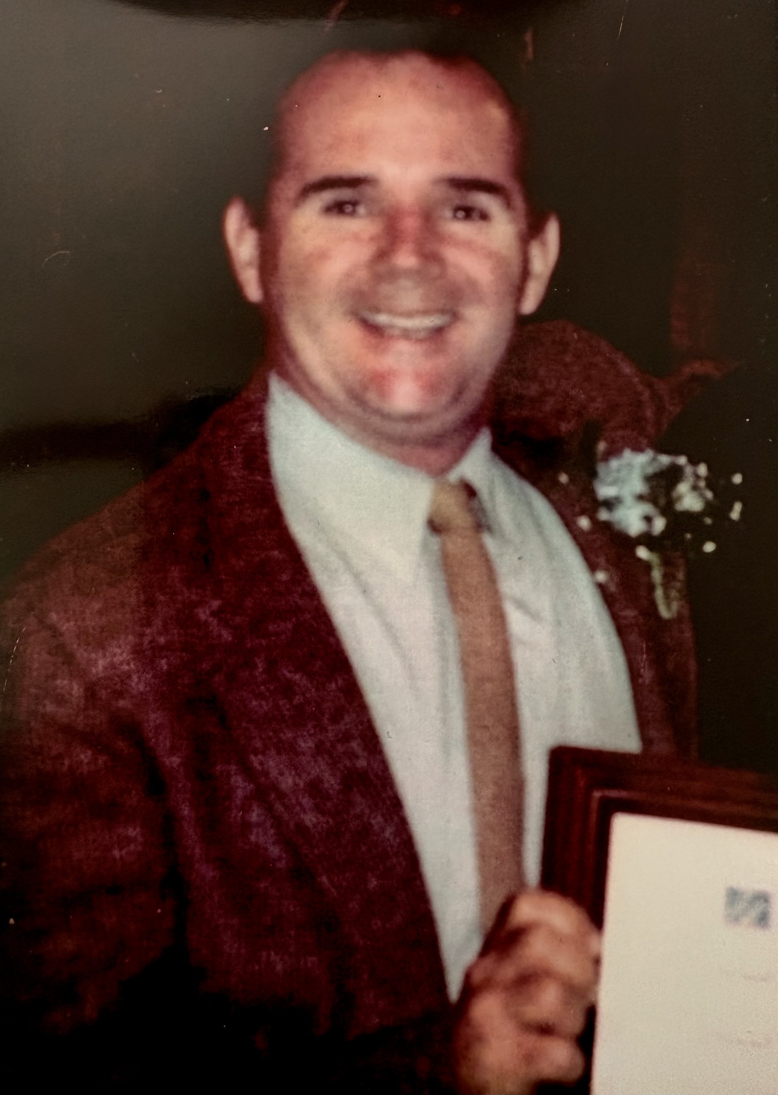 Buddy Harris died in 2002 of wounds sustained after being hit by a drunk driver. His sister, Peg, is accepting the Avon Falcons Athletic Hall of Fame award on his behalf.